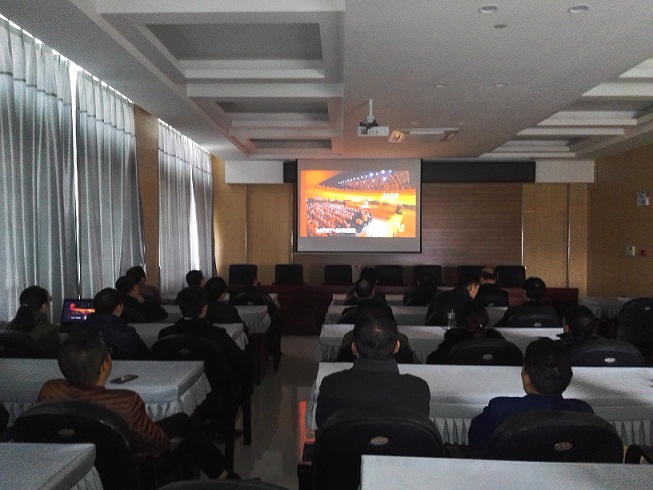 2018年11月13日下午集團公司黨總支組織下屬四個支部全體黨員在11樓會議室集中收看《榜樣3》專題節(jié)目