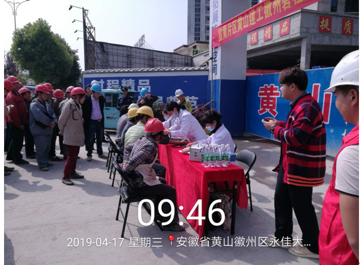 2019年4月17日上午9時,黃山建工集團(tuán)承建的徽州碧桂園德源項目工程東大門,人聲鼎沸、歡聲笑語,每個人臉上都洋溢著幸福的笑容,他們排著隊,有組織、有秩序地參加由碧桂園德源工程施工項目部組織的“關(guān)愛健康、免費(fèi)體檢”活動。此次體檢活動邀請了屯溪同仁門診部的四名醫(yī)生,分科體檢,對每位職工的心率、血壓、外科、口腔等做了細(xì)致的檢查,并做好體檢記錄,同時對工友們關(guān)心的日常生活問題、常識做了解答和溫馨提示,此次項目部參加體檢人員惠及95名。本次活動是為了增強(qiáng)員工關(guān)懷,保障員工身體健康,營造”平安、和諧、幸福、美麗”的示范工地。