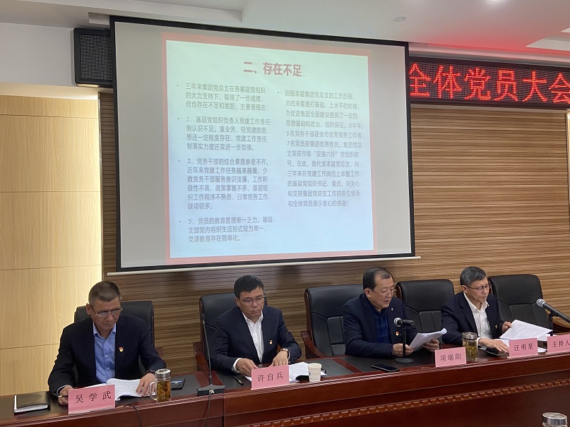 在莊嚴(yán)肅穆的國(guó)歌聲中,集團(tuán)公司黨總支換屆選舉拉開了序幕。按照既定會(huì)議流程,集團(tuán)黨支部書記項(xiàng)端陽(yáng)首先在圍繞政治建設(shè)、思想建設(shè)、組織建設(shè)、作風(fēng)建設(shè)、廉政建設(shè)和黨建深化與創(chuàng)新等方面系統(tǒng)地回顧了近幾年來的工作,分析了黨建工作面臨的形勢(shì)與存在的問題。同時(shí)對(duì)下一屆集團(tuán)黨總支工作提出了五點(diǎn)建議。經(jīng)過全體黨員認(rèn)真審議,通過了總支書記項(xiàng)端陽(yáng)同志所做的報(bào)告。